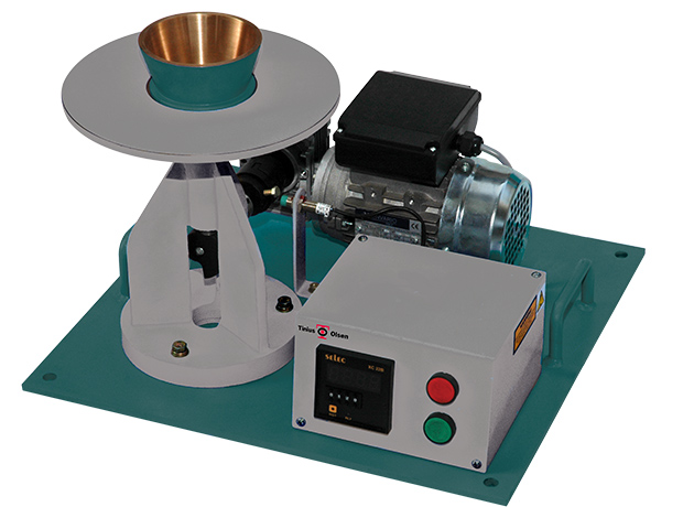 The Flow Table consists of a brass table top 250 ±2.5mm diameter, mounted on a rigid stand. The table top is reinforced with equally spaced ribs and allowed to drop through 12mm by a ground and hardened cam.